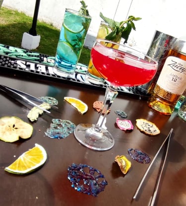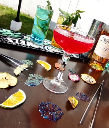 Bartender profesional, servicio de coctelería con welcome drink o brindis de lujo, bebidas limitadas por cinco horas con o sin alcohol, cristalería y barra móvil adecuada a tú espacio.